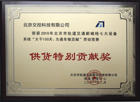 2011年2月北京市軌道建設管理設備管理中心頒發:《供貨特別貢獻獎》
